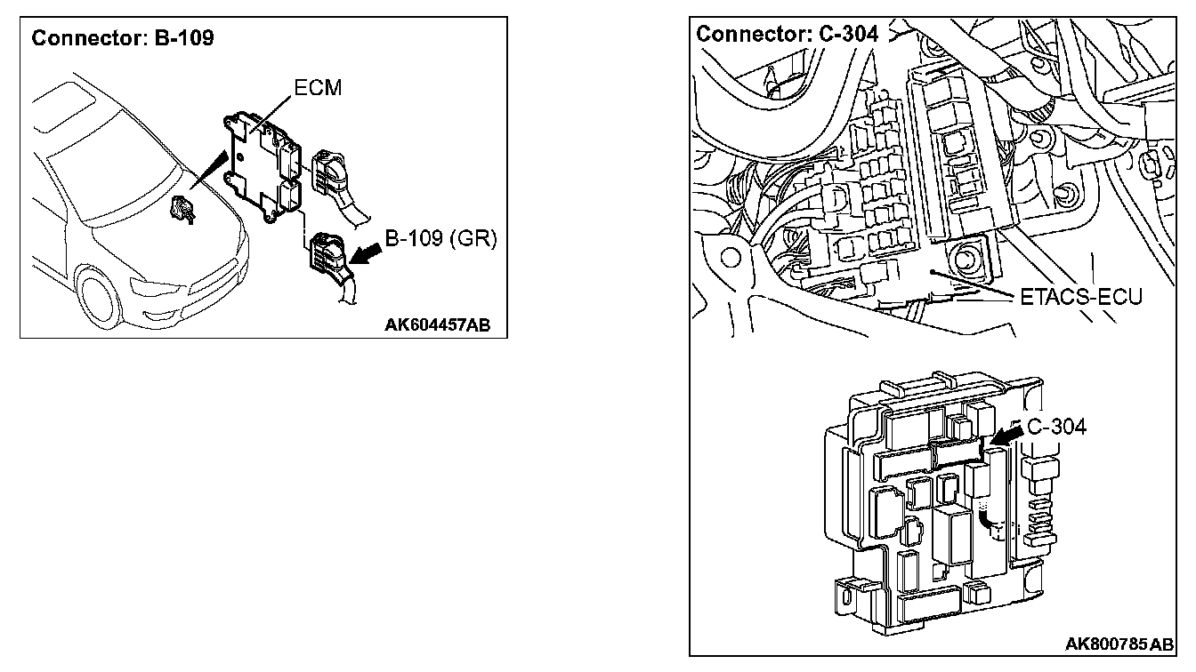 STEP 4. Check for short circuit to power supply between ETACS-ECU connector C-304 (terminal No. 10) and ECM connector B-109 (terminal No. 92).