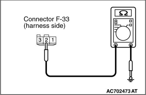 (1)Disconnect liftgate lock release handle connector F-33 and measure the resistance on the wiring harness side of the connector.