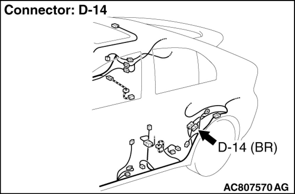 Also check intermediate connectors D-14, F-30 for loose, corroded, or damaged terminals, or terminals pushed back in the connector. If intermediate connectors D-14, F-30 is damaged, repair or replace the damaged component(s) as described in Harness Connector Inspection Harness Connector Inspection.