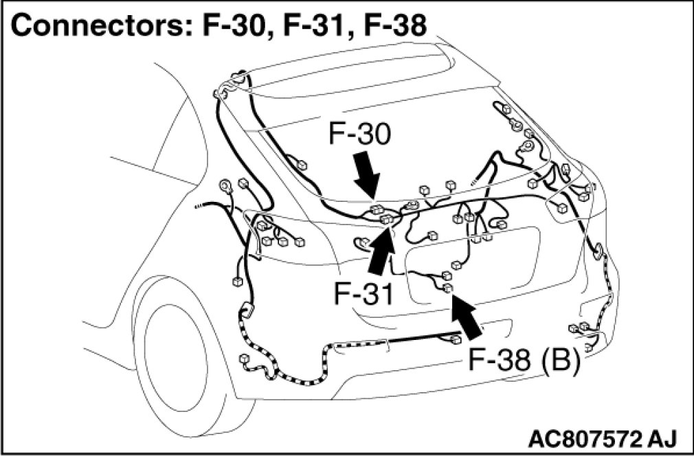 STEP 4. Check liftgate lock actuator connector F-38 for loose, corroded or damaged terminals, or terminals pushed back in the connector.