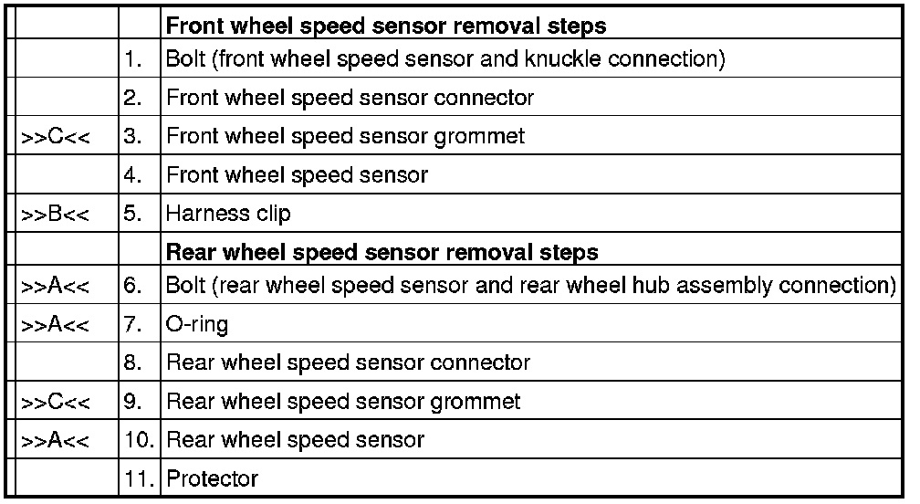 ]]C[[ FRONT WHEEL SPEED SENSOR GROMMET/REAR WHEEL SPEED SENSOR GROMMET INSTALLATION