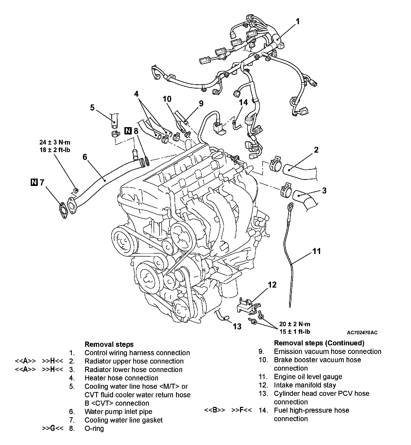 3. Remove special tool MB991454, MB991928 or MB991895 which was installed for supporting the engine and transaxle assembly when the timing chain was removed.
