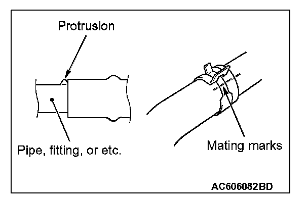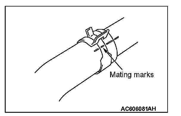 Make mating marks on the radiator hose and the hose clamp as shown to install them in the original position. Then, remove them.