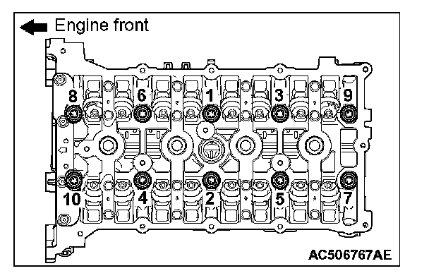 (1) Tighten the cylinder head bolts to the specified torque in the order of number shown in the figure.