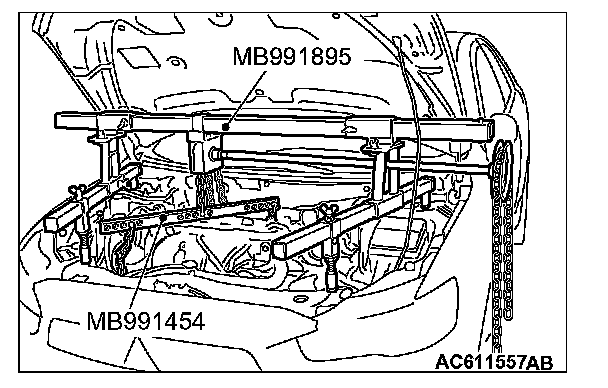 3. Install special tool MB991454, MB991928 or MB991895 which was installed for supporting the engine and transaxle assembly when the timing chain was removed.