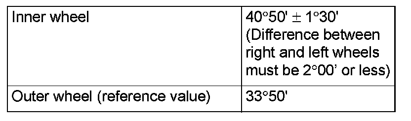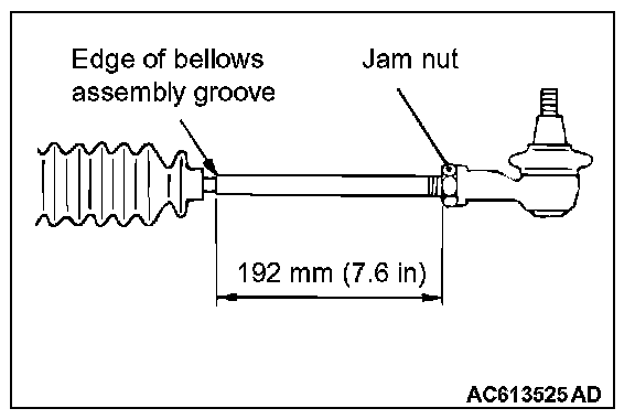 3. If the measured value is not within the standard value, adjust the tie-rod ends (right and left), and repeat Steps 1 and 2.