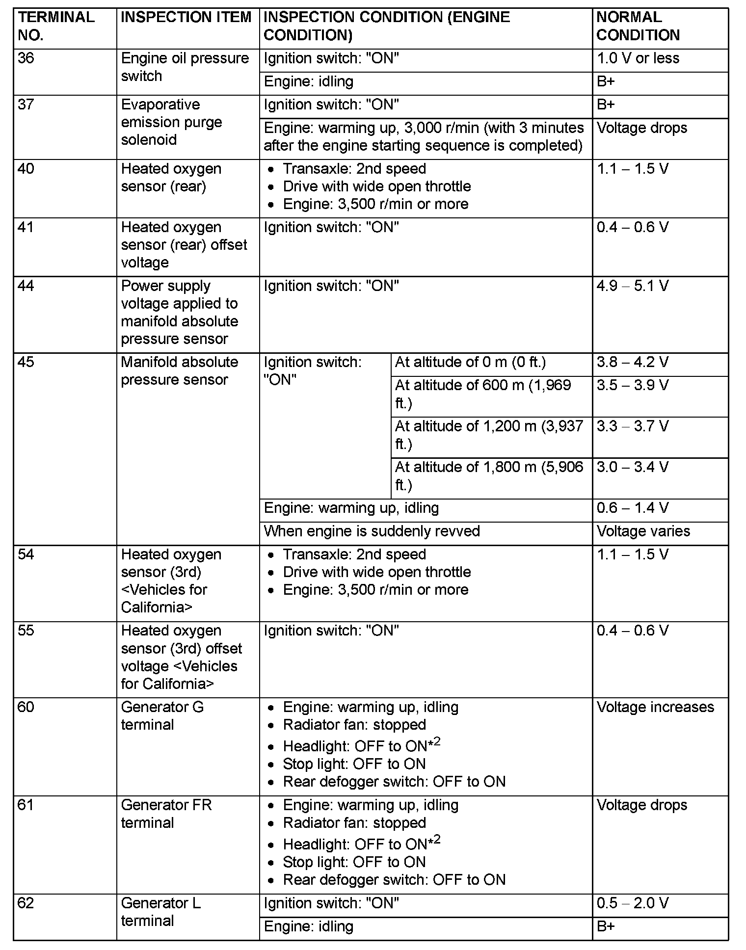 - *2: Vehicles for Canada, the headlight, taillight, etc. remain lit even when the lighting switch is in "OFF" position but this is no problem for checks.