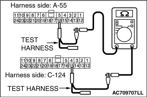 (2)Check the wiring harness between joint connector (CAN3) C-124 (terminal 4) and joint connector (CAN4) A-55 (terminal 5)