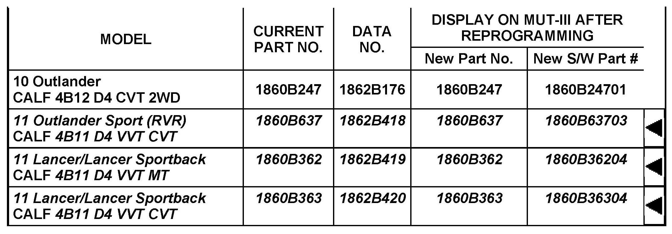 ECM REPROGRAMMING CHART