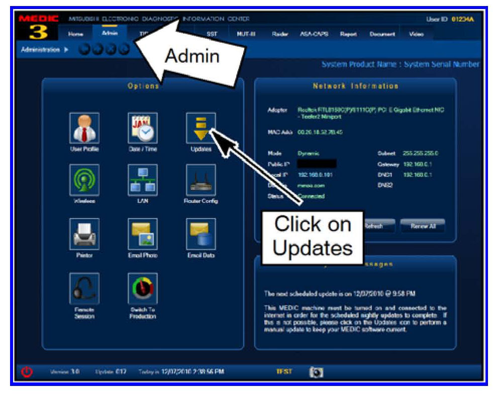 3. Select the MEDIC 3 Admin tab and click on "Updates."