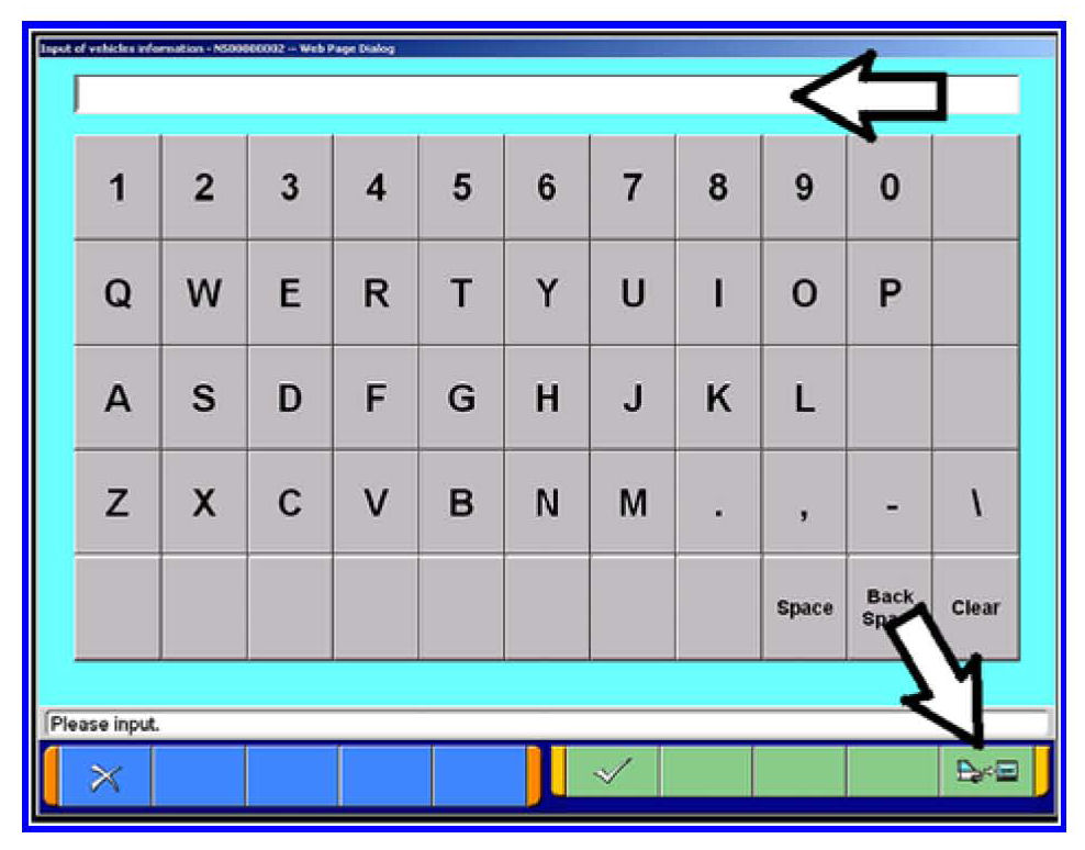 h. Click on the icon in the lower RH corner of the screen to have MUT-III automatically read the VIN. If a message appears saying that the VIN cannot be input automatically manually type the 17 digit VIN into the VIN field at the top of the page.