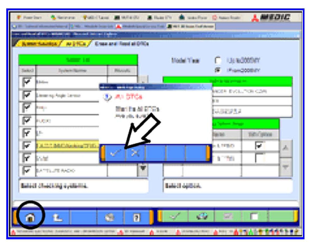 b. If DTCs do not return click the check mark to clear the window and then click the Home icon in the lower left of the screen to return to the main menu.