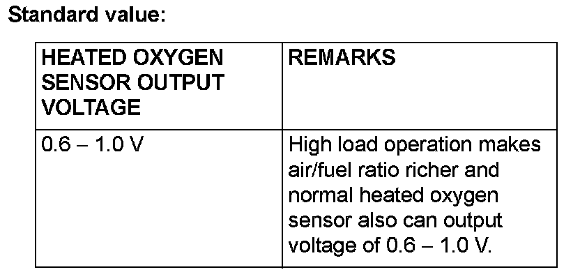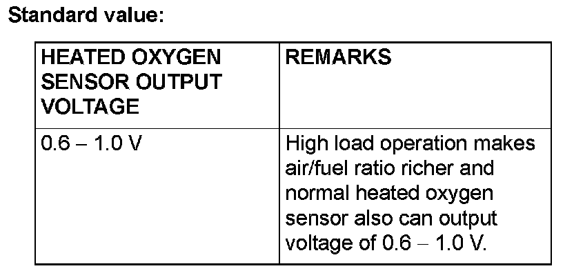 - If the temperature of sensing area does not reach the high temperature [of approximately 400 °C (752 °F) or more] even though the heated oxygen sensor is normal, the output voltage would be possibly low in spite of the rich air-fuel ratio.