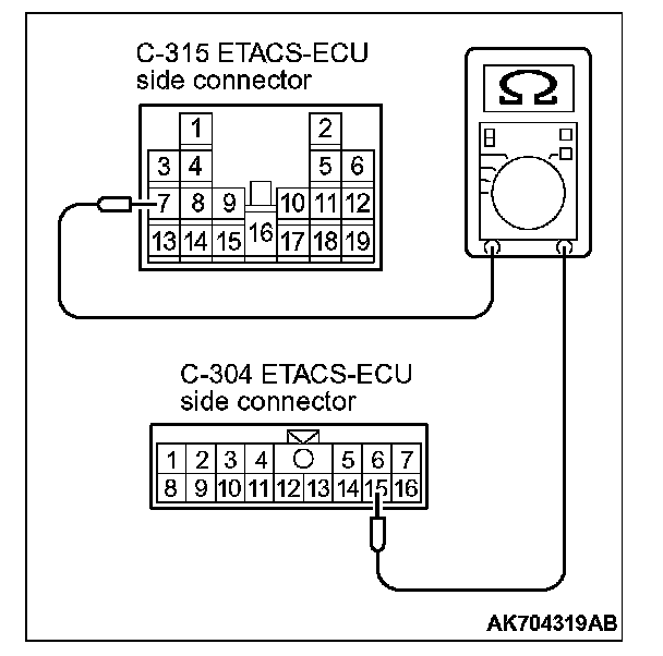 STEP 8. Check the continuity at ETACS-ECU side connector C-304 and C-315.