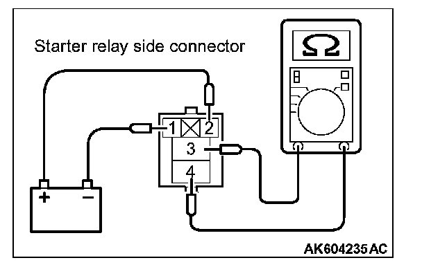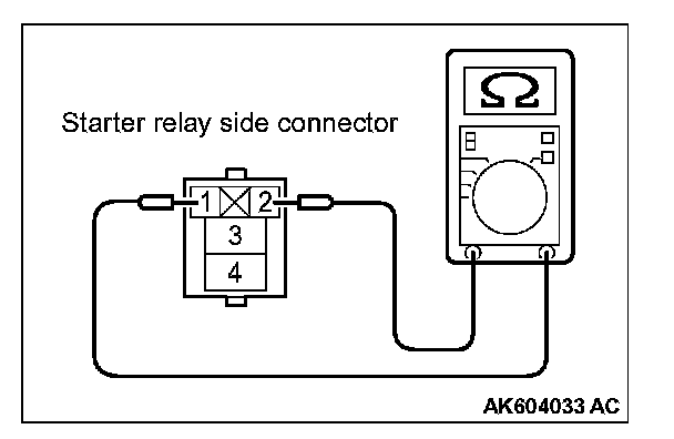 2. Check for continuity between the starter relay terminals No. 1 and No. 2.