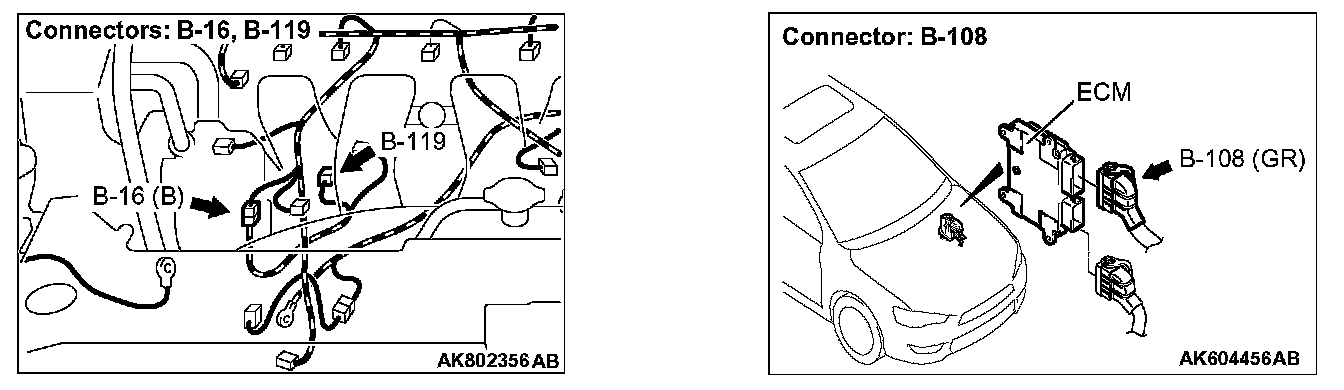 STEP 6. Check harness connector B-108 at ECM for damage.