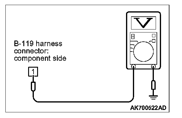 STEP 2. Measure the power supply voltage at engine oil pressure switch harness side connector B-119.