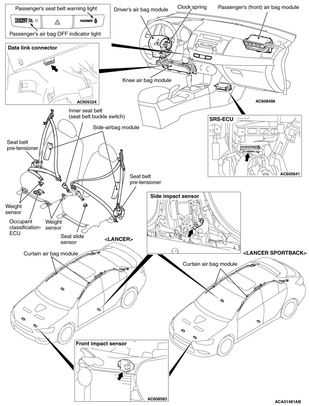 The illustration above shows the front impact sensor (LH) and the side impact sensor (LH).