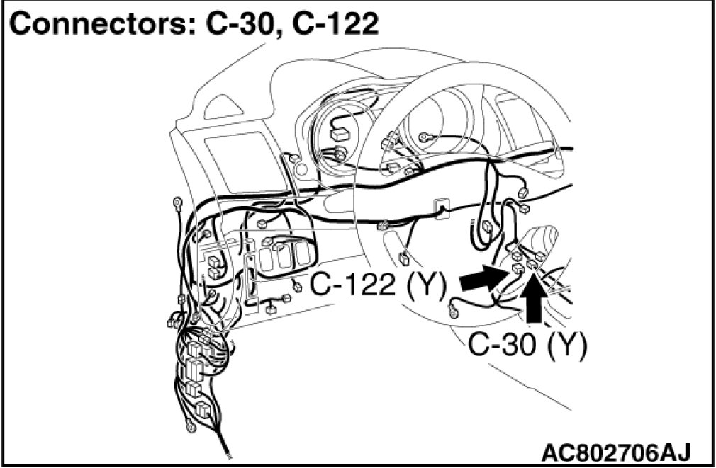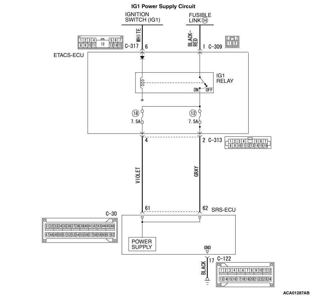 - SRS-ECU connector C-30 (terminal No.62) and the ETACS-ECU connector C-313 (terminal No.2)