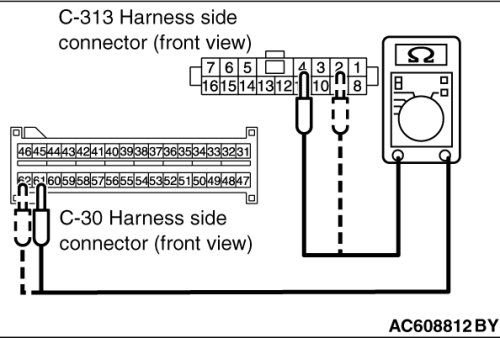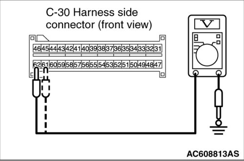 - SRS-ECU connector C-30 (terminal No.61) and the ETACS-ECU connector C-313 (terminal No.4)