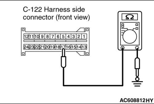 - Continuity between C-122 wiring harness side connector terminal No. 17 and body ground