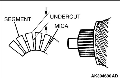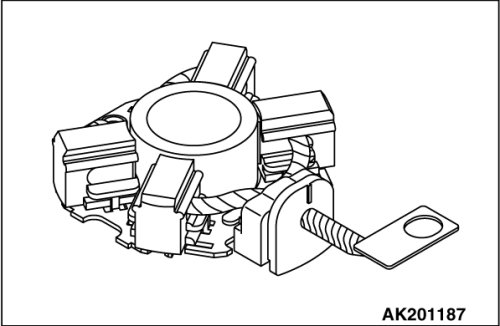 1. Check the commutator contacting surface of each brush for abnormal roughness. Also check the height of the brush. Replace the brush holder if the height is lower than the limit.