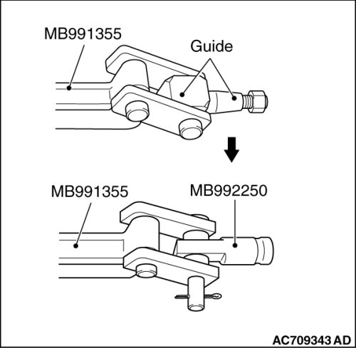 1. Replace special tool MB992250 with a guide of special MB991355 as shown in the figure.