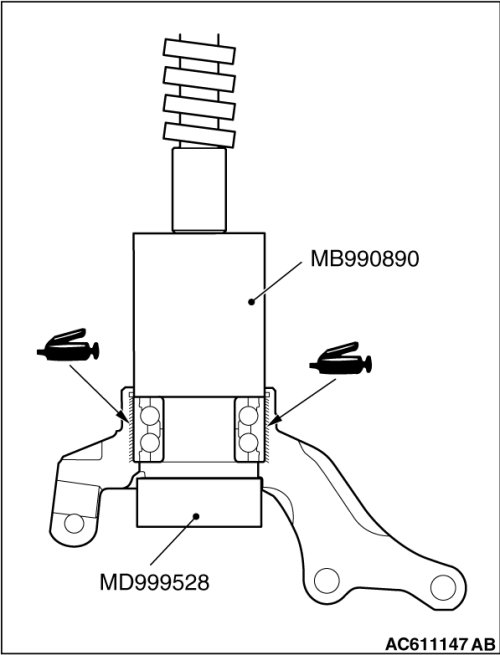3. Use special tools MB990890 and MD999528 to press-fit the wheel bearing.