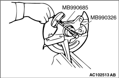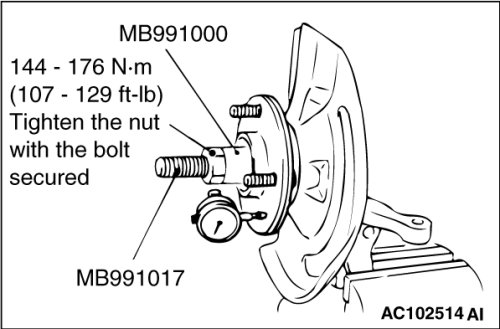 3. Use Special tools MB990326, MB990685 to measure the hub rotation starting torque.