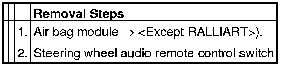 - Before removing the air bag module, refer to Service Precautions ( Technician Safety Information) and Driver's Air Bag Module and Clock Spring ( Removal and Installation (Except Ralliart) [Except RALLIART] or [RALLIART]).