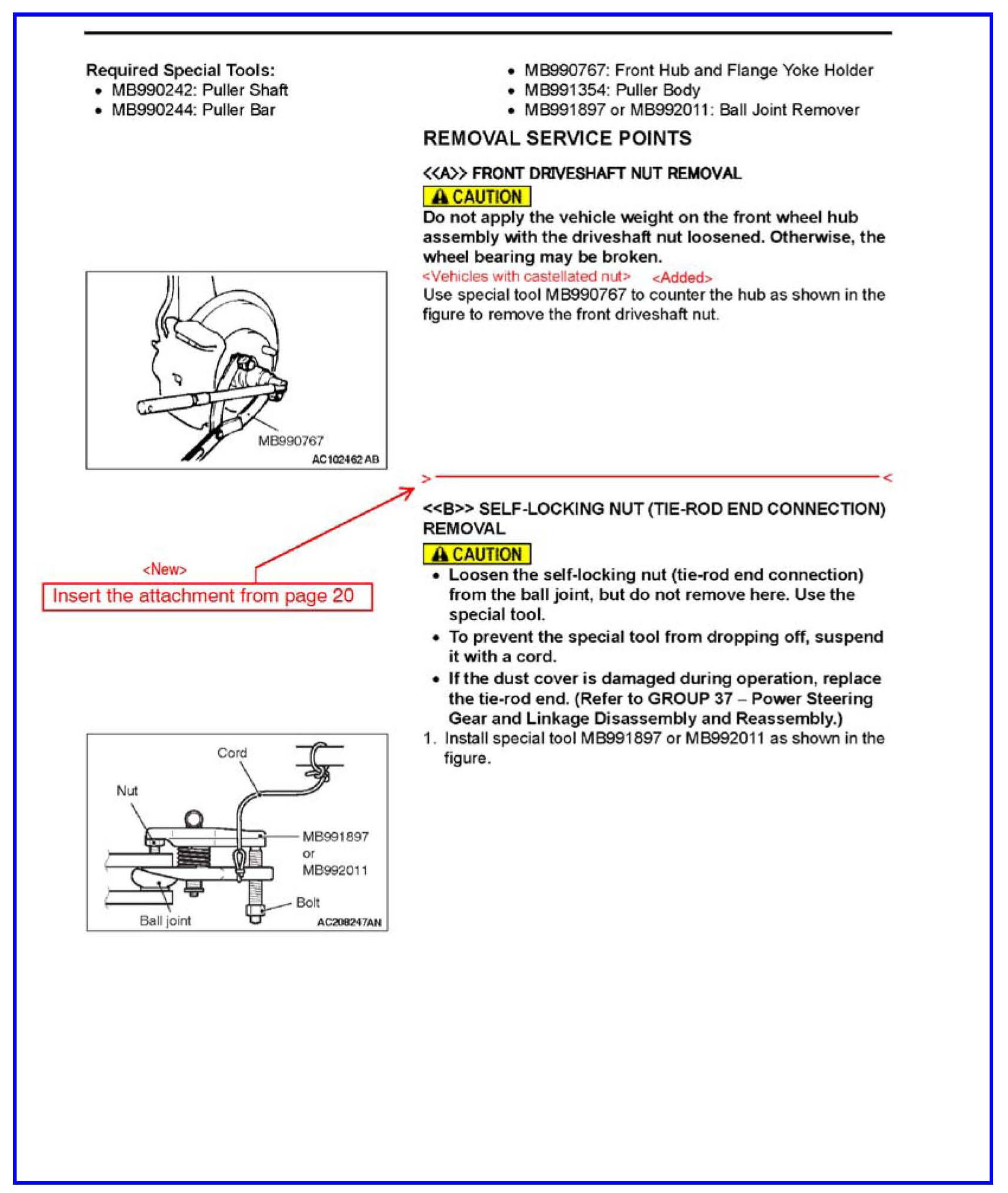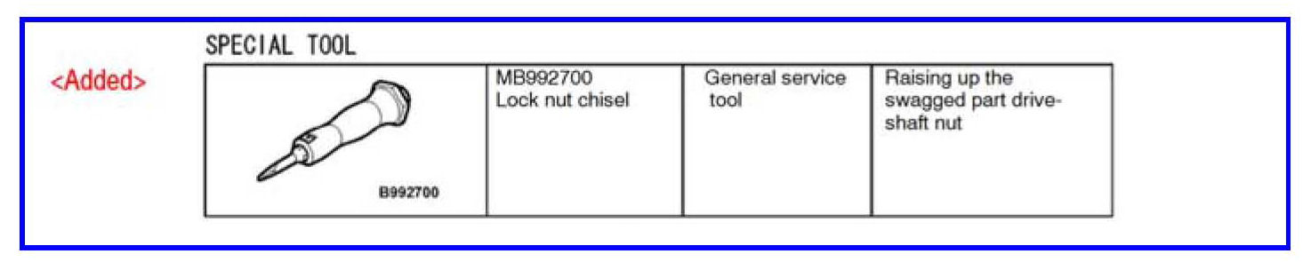 2011 Lancer, 2011 Lancer Sportback, 2011 Lancer Evolution: Add the following information to the Special Tools section in Group 26 - Front Axle.