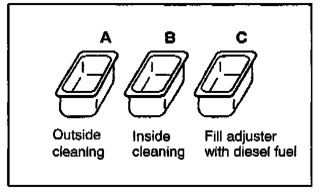 ^ After cleaning the adjuster, use Container C to fill it with clean diesel fuel.