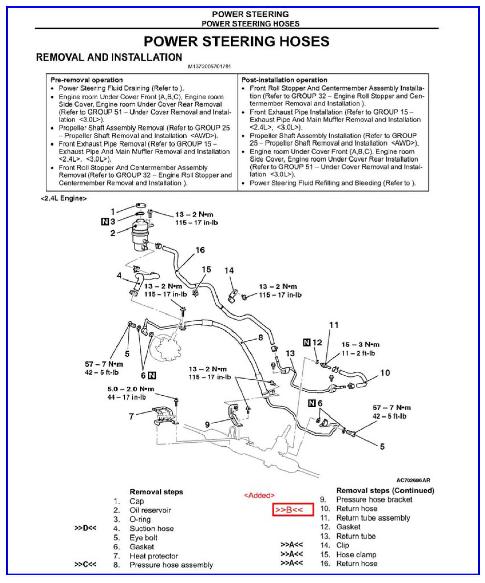 2008 - 2010 Lancer/Lancer Sportback - Group 37: Power Steering Hoses Removal and Installation