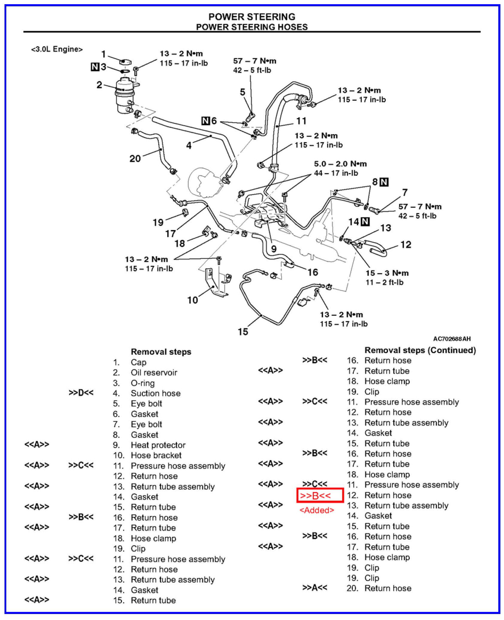 2008 - 2012 Outlander - Group 37: Power Steering Hoses, Removal and Installation