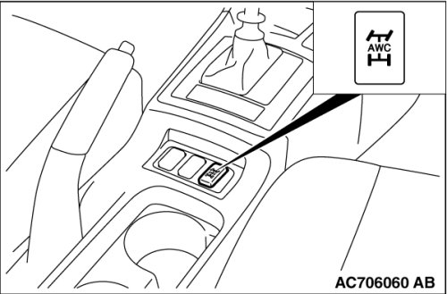 With each pressing of the AWC switch, the ACD control mode shifts in the order as follows: TARMAC -> GRAVEL -> SNOW -> TARMAC