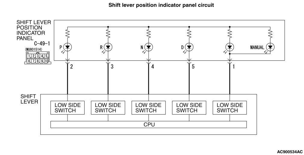 INSPECTION PROCEDURE 2: Shift indicator light does not illuminate.