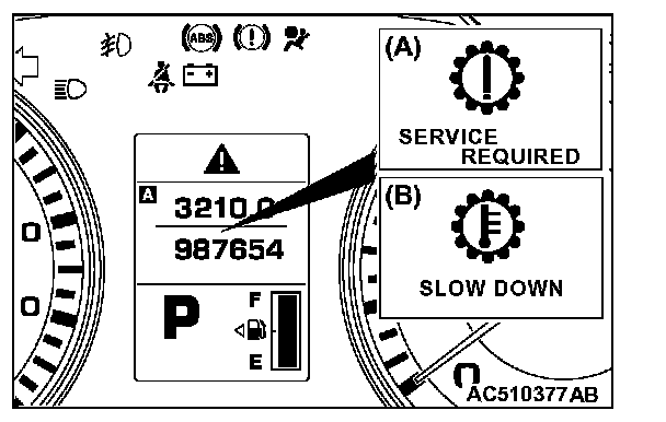 NOTE: When the symbol (B) is displayed in the information screen in the multi information display, the transmission fluid temperature is high. (Symbol (B) is turned on when the fluid temperature is approximately 140°C (284°F) or higher and turned off automatically when the fluid temperature drops below approximately 137°C (279°F).)