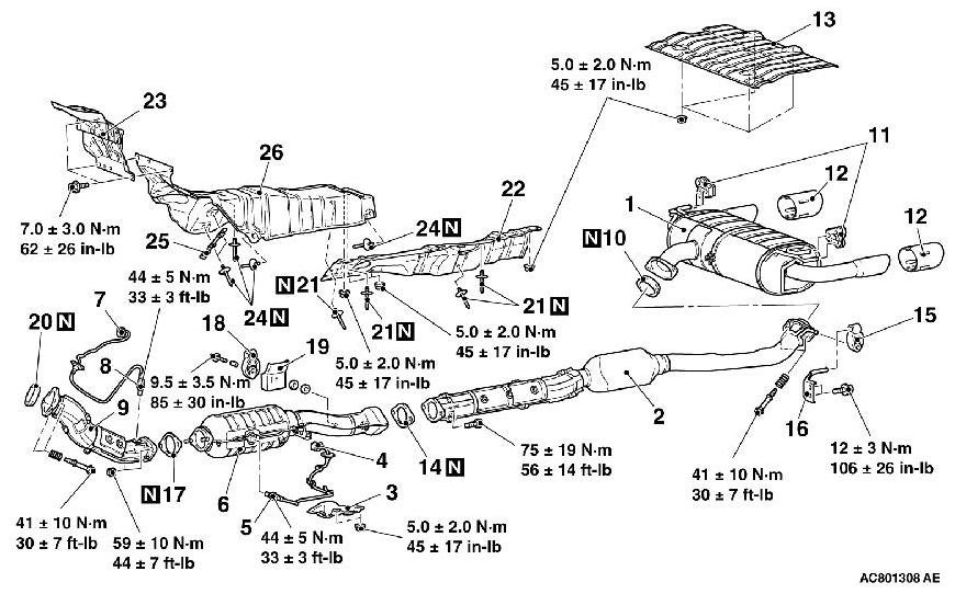 Tightening torque: 44± 5Nm (33± 3 ft-lb)