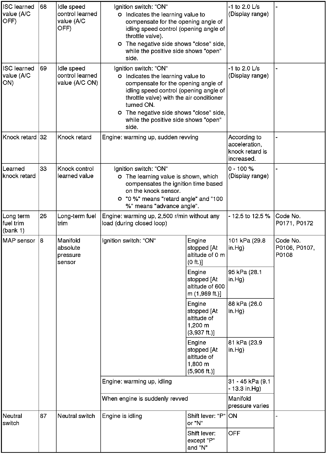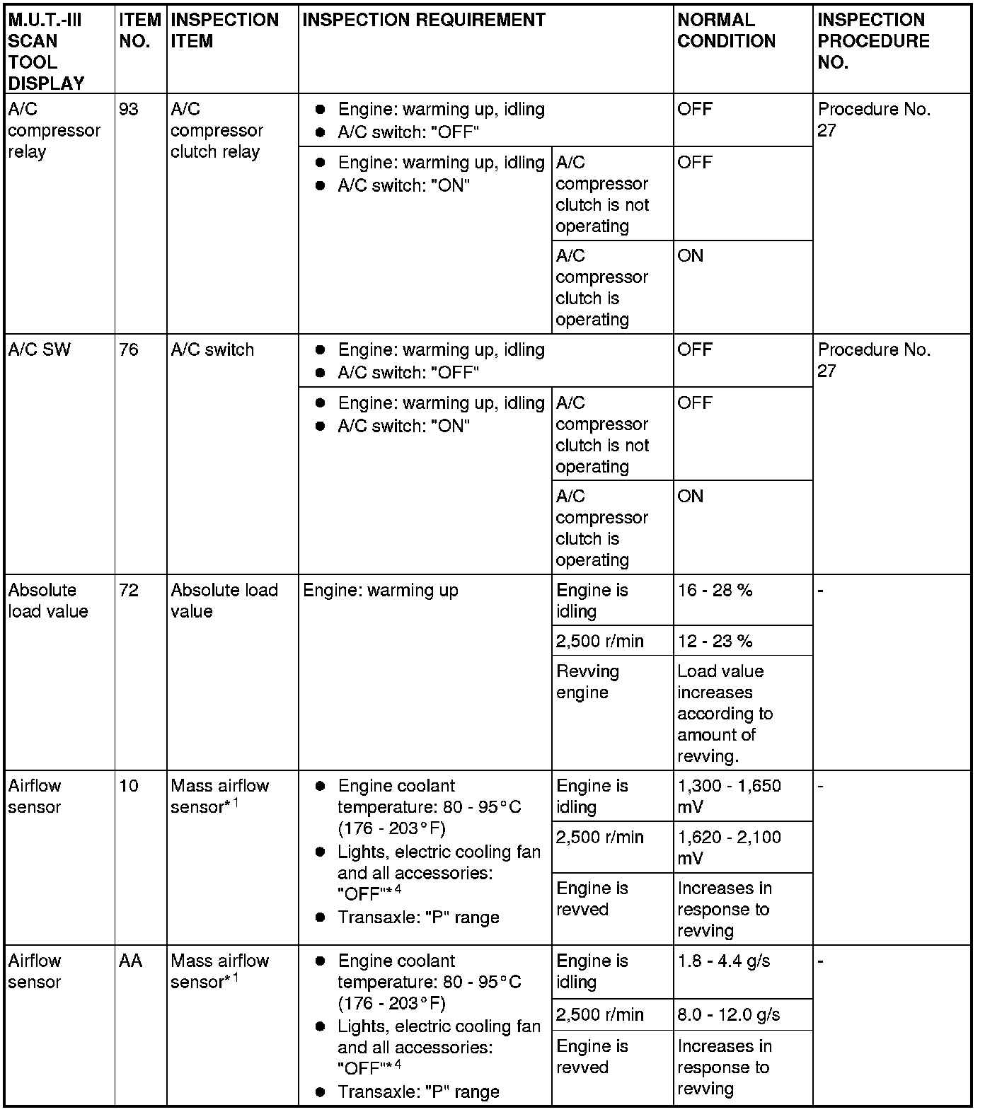 *1: In a new vehicle [driven approximately 500 km (311 mile) or less], the mass airflow sensor output value is sometimes 10% higher than the standard value.
