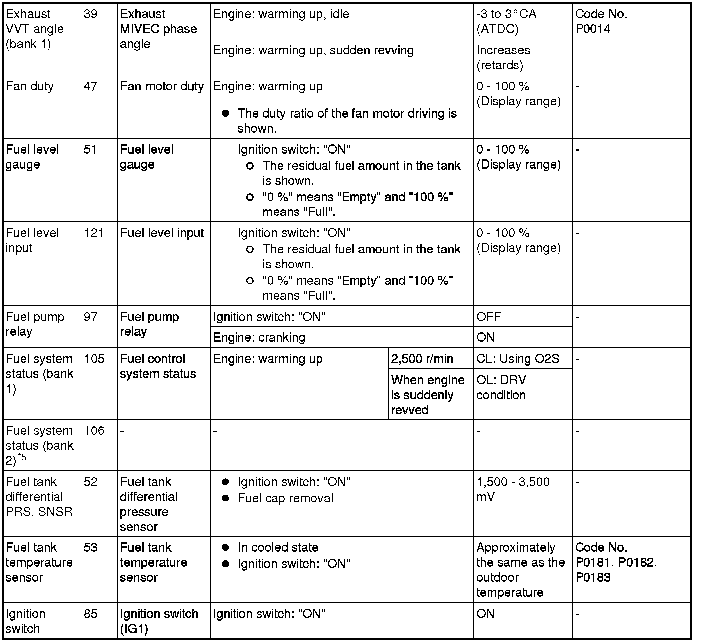 *5: Data items are displayed on scan tool display, but the in-line 4 engine is not applicable and its data is displayed as "N/A".