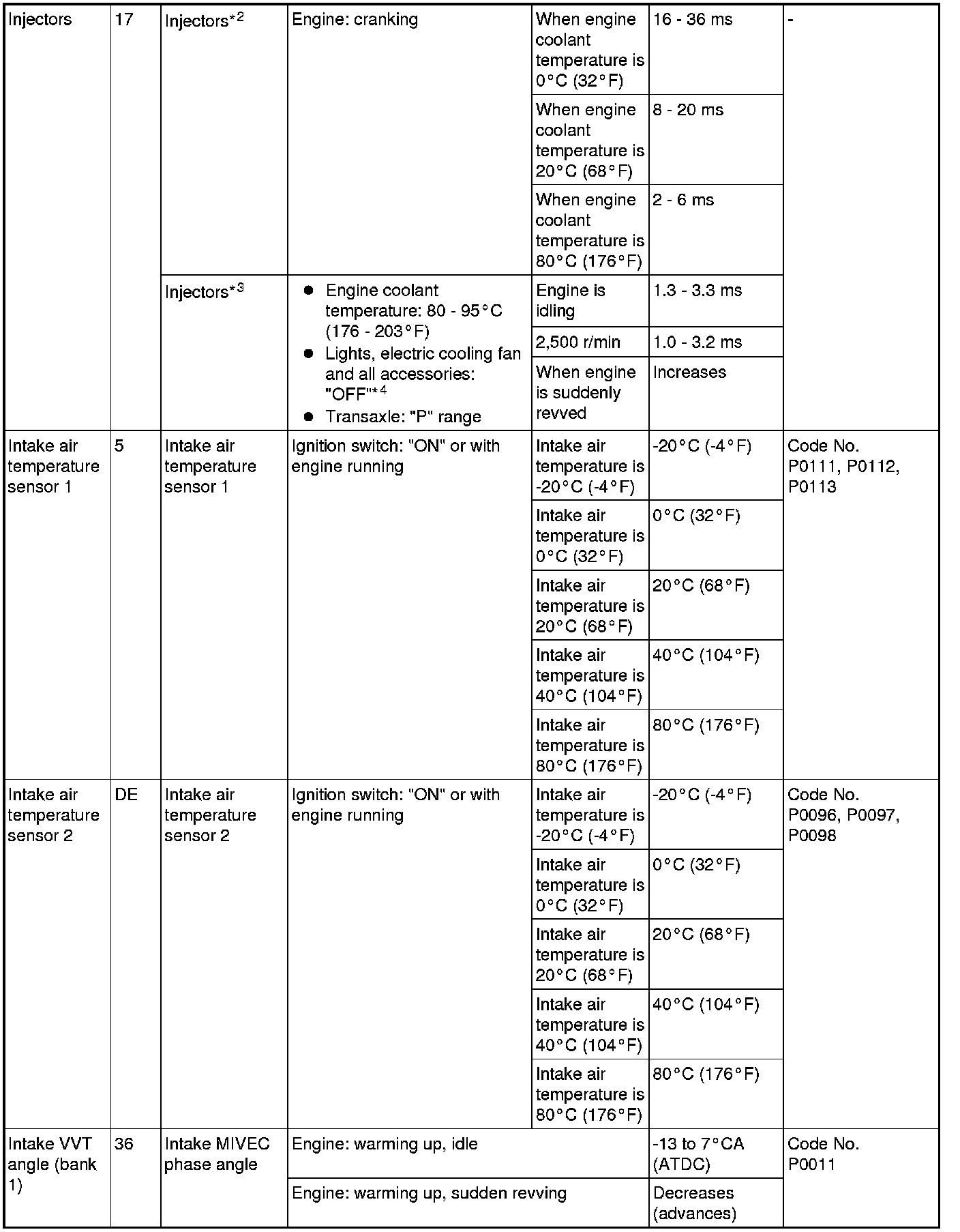 *3: In a new vehicle [driven approximately 500 km (311 mile) or less], the injector drive time is sometimes 10% longer than the standard time.