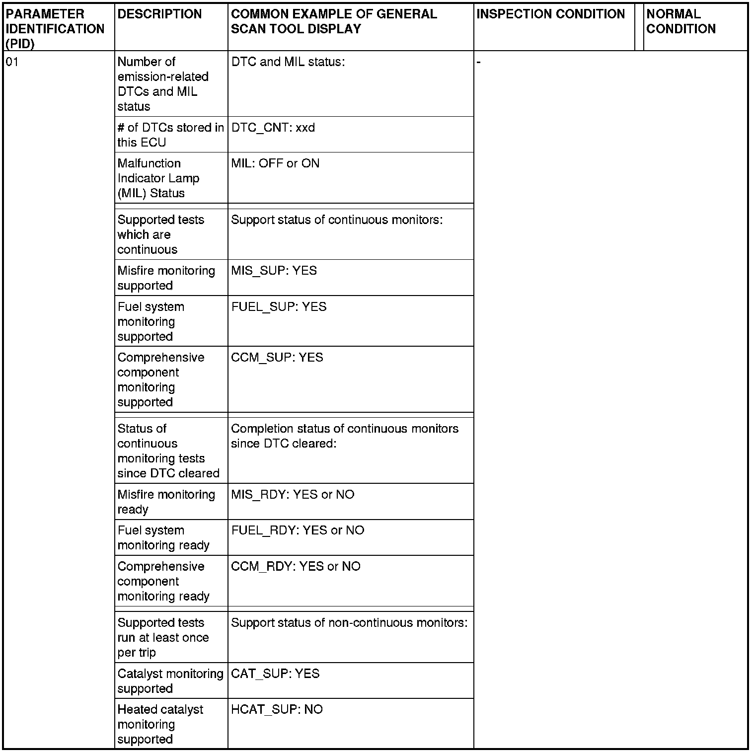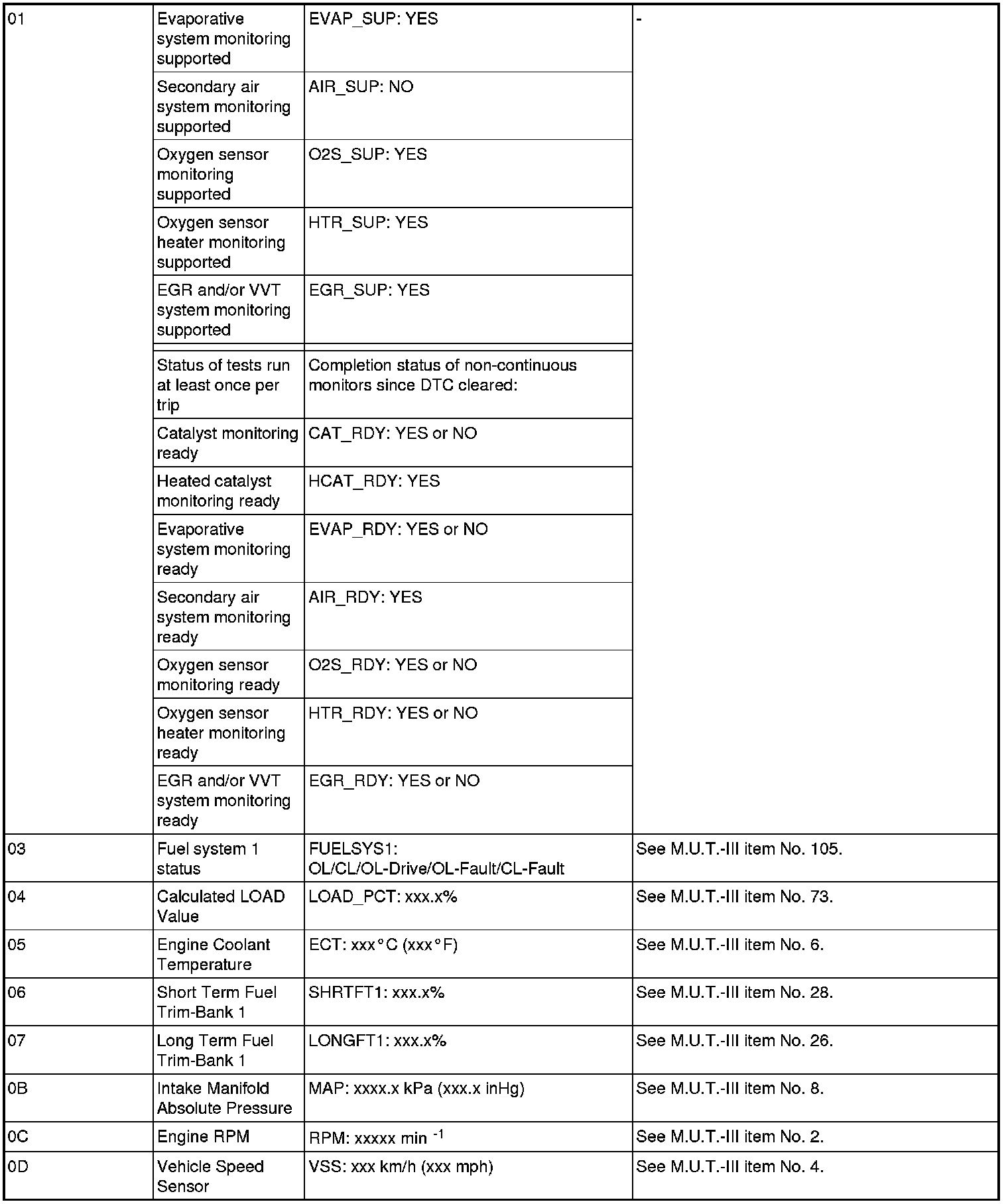 General Scan Tool (GST) Mode 01 Reference Table
