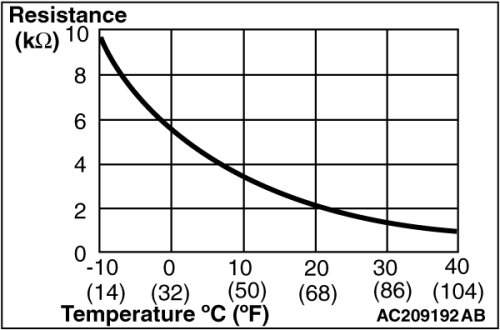 Measure the resistance between connector terminals 1 and 2 under at least two different temperatures. The resistance values should generally match those in the graph.