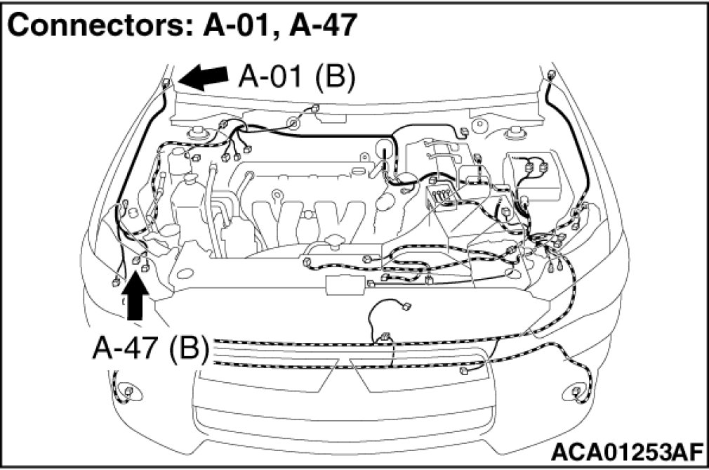 Q. Are headlight assembly (RH) connector A-47 [front], side turn-signal light (RH) connector A-01 [side], rear combination light (RH) connector F-06 [LANCER (rear)], rear turn-signal light (RH) connector F-36 [LANCER SPORTBACK (rear)] in good condition?