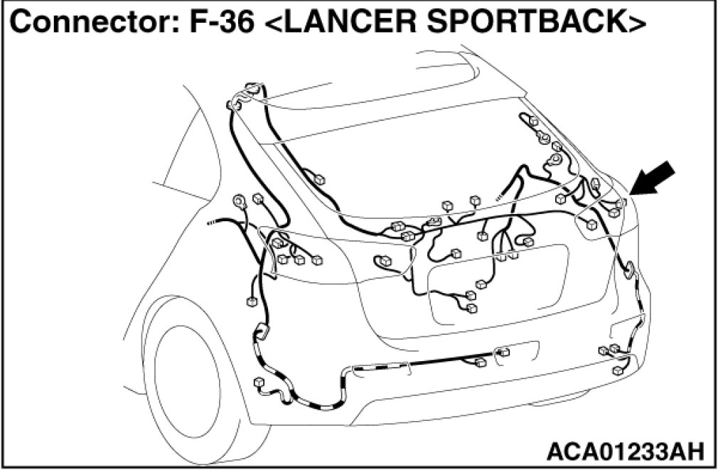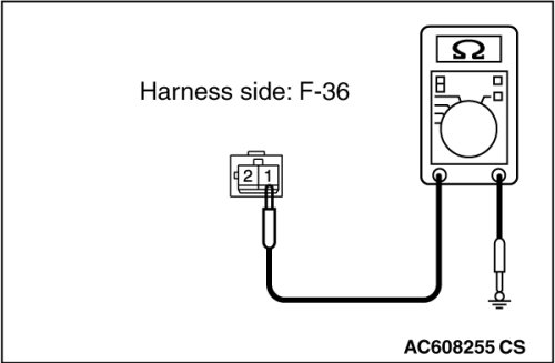 - Measure the resistance between the rear turn-signal light (RH) connector F-36 (terminal 1) and body ground. [LANCER SPORTBACK (rear)]