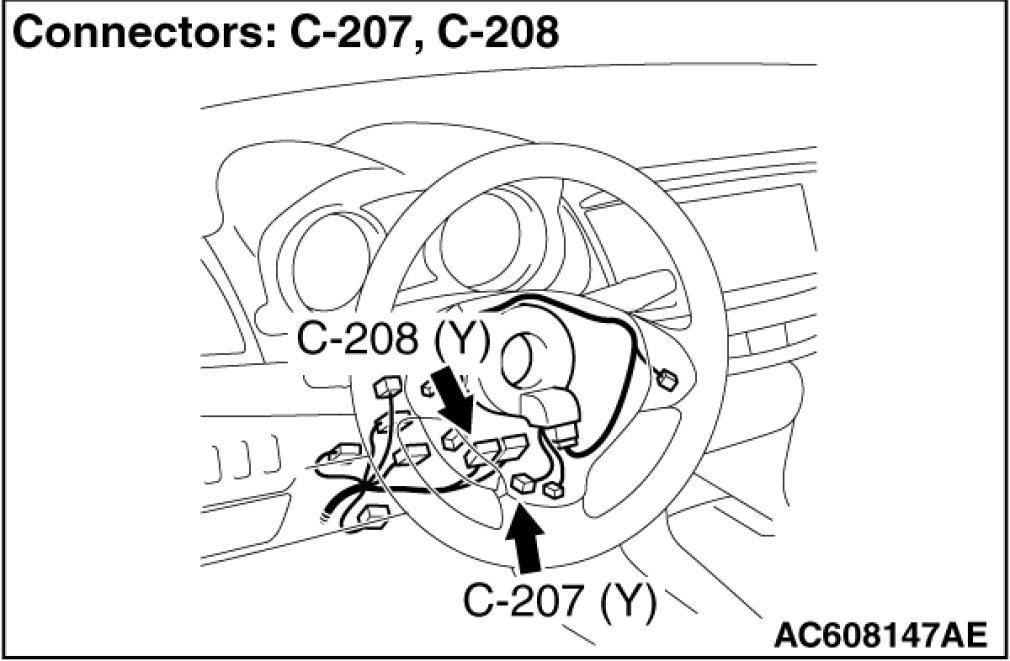 (2)Disconnect the clock spring connector C-208.