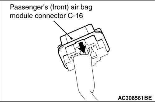To prevent the air bag from deploying unintentionally, disconnect the passenger's (front) air bag module connector C-16 to short the squib circuit.
