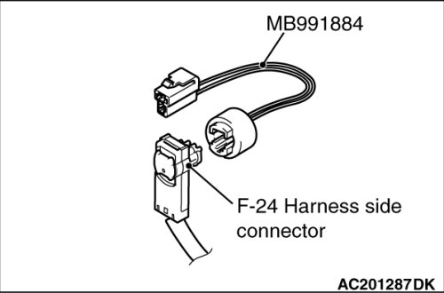 (5)Connect special tool MB991884 to the removed F-24 harness side connector.