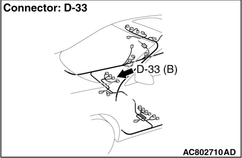 Do not insert a probe into the terminal from D-33 harness side connector front side directly, as the connector contact pressure may be weakened.