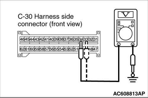 (7)Measure the voltage between C-30 harness side connector terminals 33 and 34 and body ground.